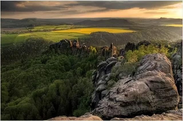 远景的树冠起起伏伏线条感很强,作者做了近处景物的暗处理。