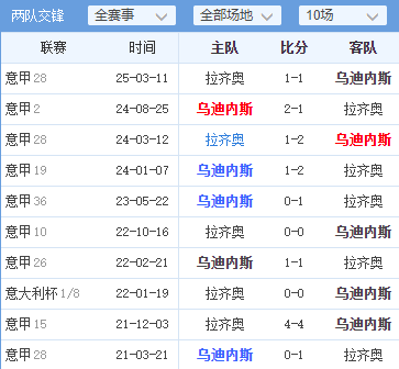 平局或拉齐奥小胜的可能性较高。拉齐奥的防守更值得信赖,但严重的伤病可能限制其进攻;乌迪内斯状态不稳定且门将缺阵,想全取三分也有难度。比分预测为0-0、1-1或0-1。