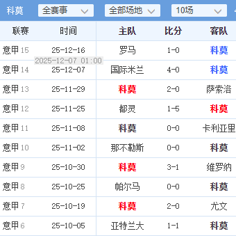 · 核心特点: 防守极其稳固,联赛失球仅11个,排名第二少。但客场攻击力疲软,是意甲客场进球最少的球队之一。