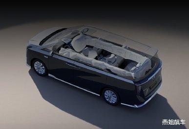 被动安全方面,采用“八纵十九横”车体结构,高强度钢占比高达85.6%,打造坚实的笼式铠甲车体。针对MPV第三排安全痛点,首创1.5米后风窗气囊,与两侧6.4米超长侧气帘,形成360°环抱式气囊矩阵,构筑刚柔并济的全向安全堡垒。