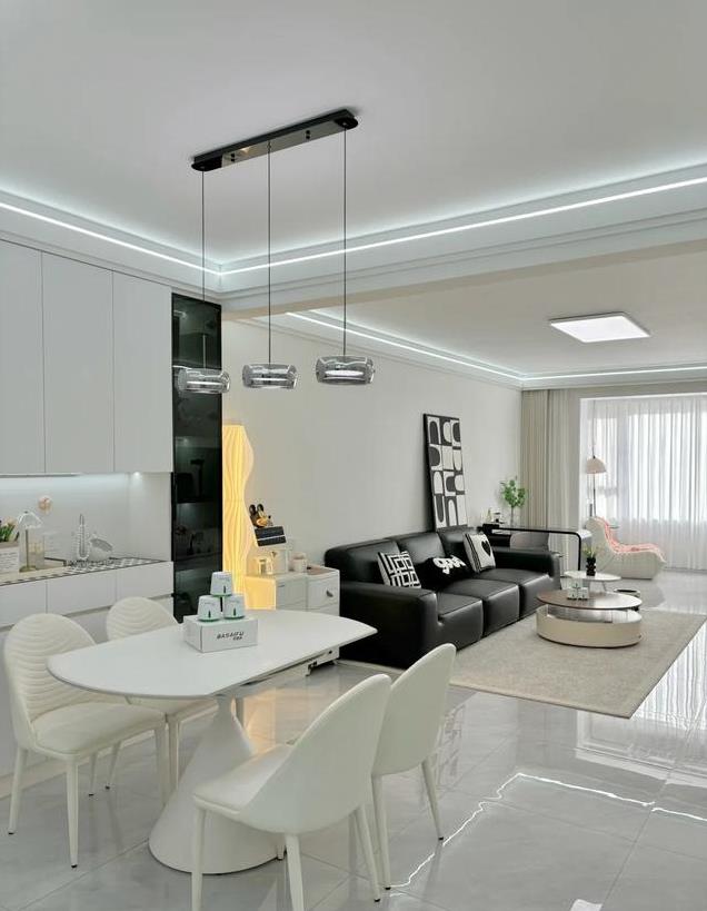不做无主灯的设计,在水电改造的时候,直接留一个主灯的线头在顶面,水电改造的费用也更低,最后搭配一盏简洁的平板灯,一点不压层高,还大气。