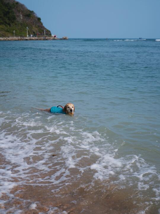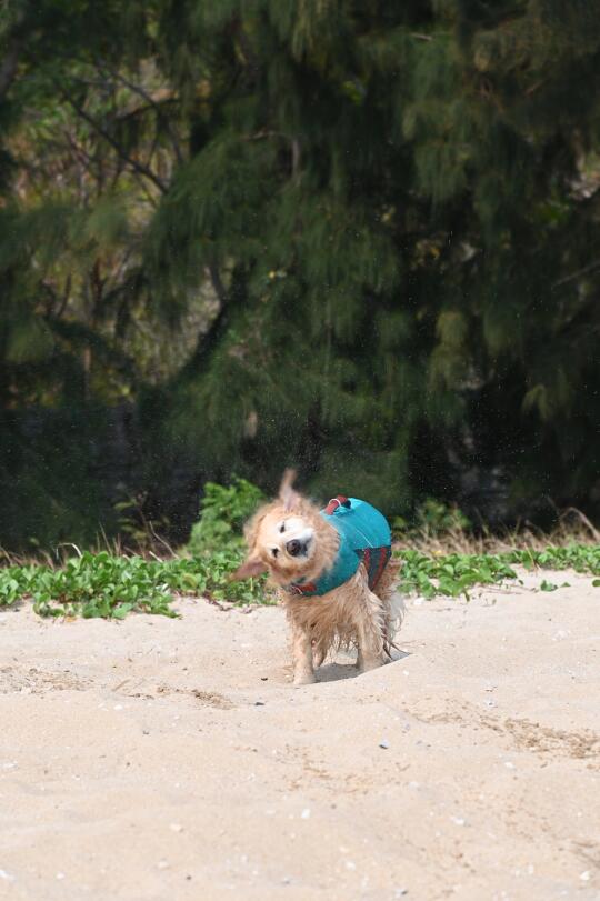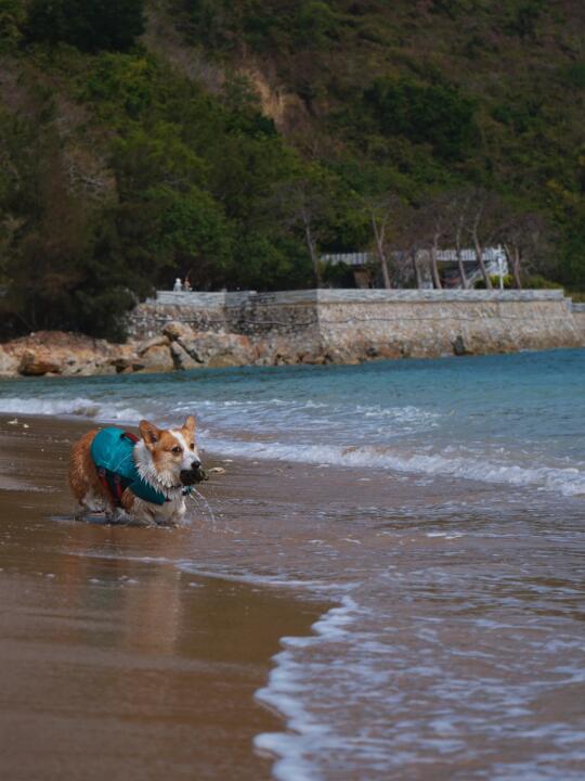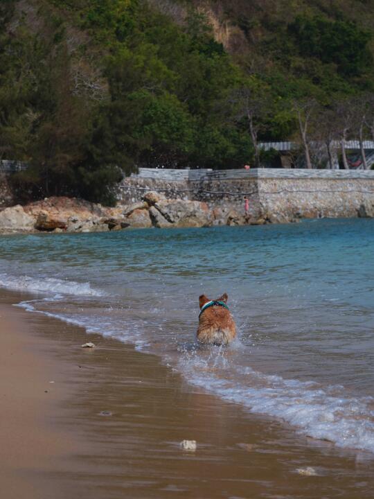 民宿出发半小时即可到达 沙子很软有一些珊瑚🪸碎片注意一下可以脱鞋踩沙很好玩但是要注意脚下哦~同一天我们上午去了海棠湾 海浪超大没呆多久就走啦下午看天气不错去了小东海海浪小很多很适合小狗玩 (野游一定一定要穿救生衣密切关注小狗状态)发不完根本发不完小狗在海边超级快乐也超级出片!!!