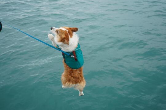 柯基 小狗在海边 狗狗游泳 总有小狗陪你看海