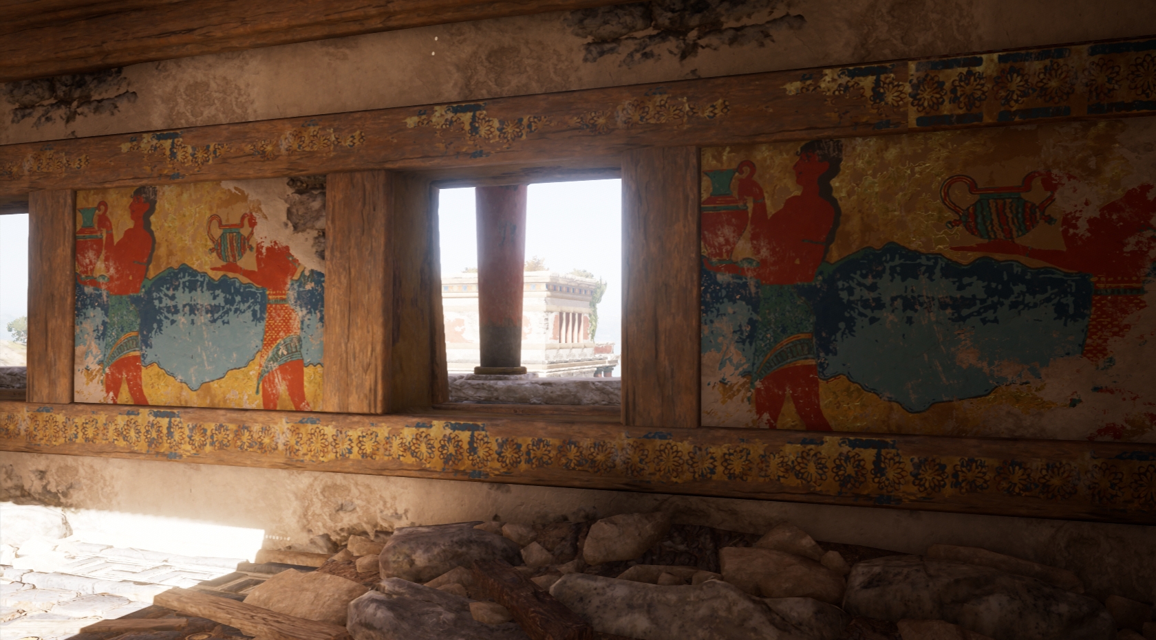 约公元前2000年至前1450年间,米诺斯文明达到鼎盛,其标志性建筑克诺索斯宫殿规模宏大,拥有复杂的供排水系统和精美的壁画艺术。宫殿中出土的壁画展现了米诺斯人高超的艺术造诣,这些文物在游戏中也有相应的艺术再现。
