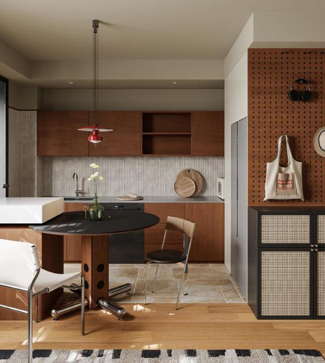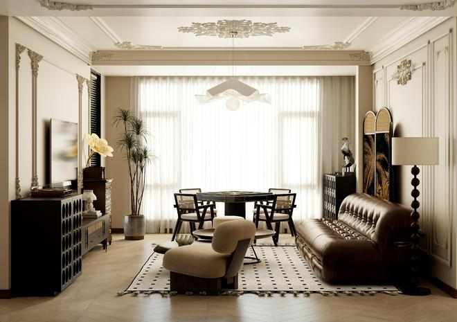 最近去朋友家串门,一推门差点以为穿越到《繁花》片场——焦糖色皮沙发、柚木矮柜、玻璃吊灯,连纸巾盒都是包豪斯风的金属网格款!我抓着她就问:“现在不流行侘寂风了?”她翻了个白眼:“侘寂是庙,中古才是家!”