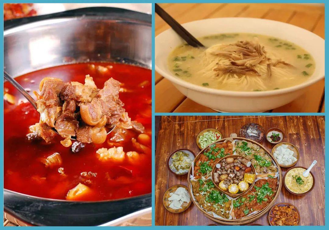 奶汤面、红汤羊肉、钵钵鸡、红油抄手、粉子醪糟、玉米馍馍、石磨豆花、油酥小鱼儿、甜皮鸭