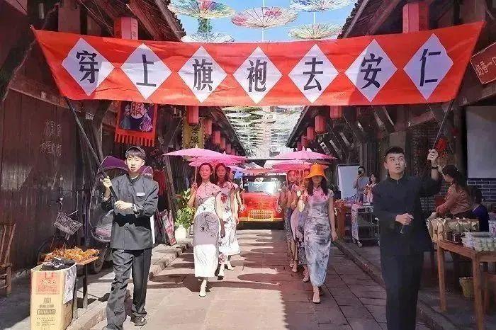 每年五月安仁古镇都会举行“穿上旗袍去安仁”主题活动,全成都的旗袍美人都会漫步在公馆老街上,今年也不例外。如果不想走路,可以乘坐西南地区第一条有轨电车——铛铛车,从电车总站(刘氏庄园)到安仁坝子,线路全长1.8公里,串联了民国风情街、刘氏庄园、站台咖啡、安仁书院等景点。
