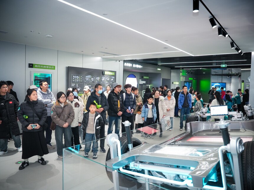 在科普馆的核心展区,讲解重点转向了比亚迪新能源汽车的 “硬核科技”。工作人员围绕比亚迪汽车的核心部件展开详细解读,从保障续航与安全的电池系统、兼具稳定性与舒适性的底盘结构,到反应灵敏的刹车系统,逐一拆解其工作原理与技术优势。