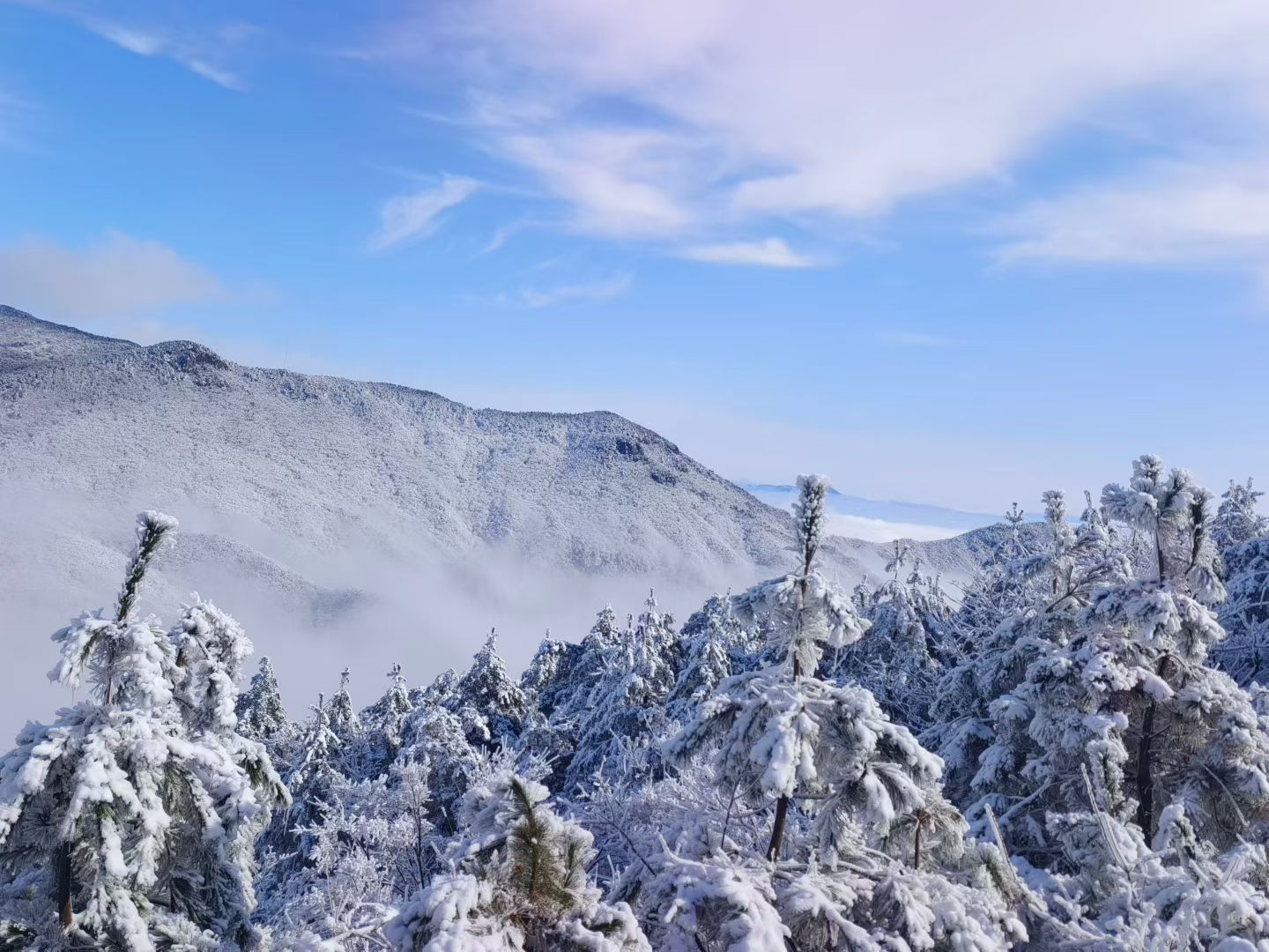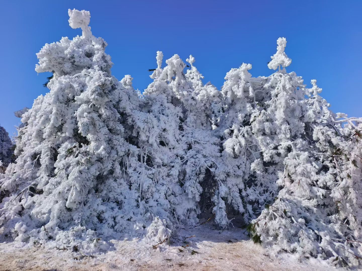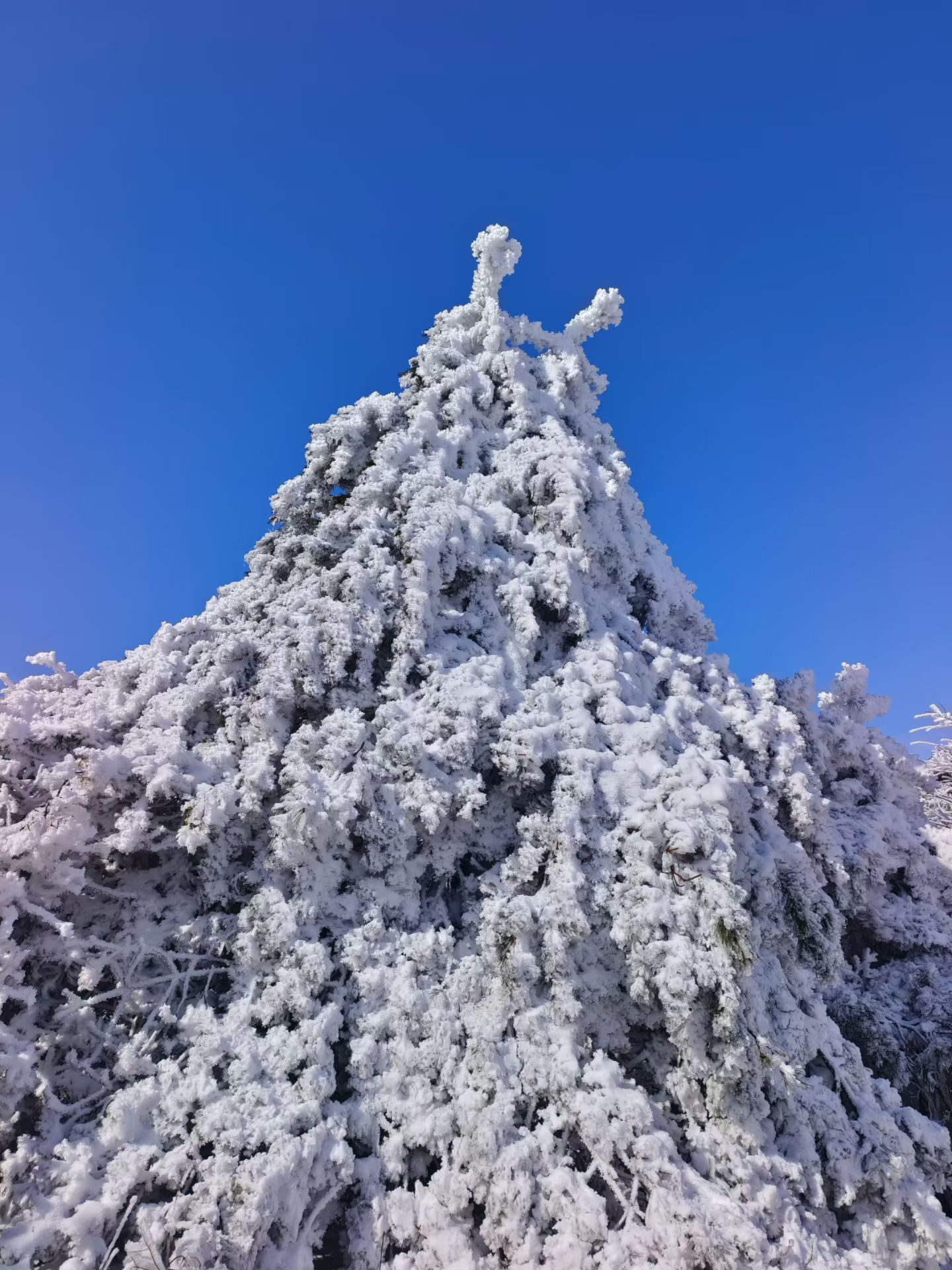 这里根本就是南方雪景的天花板!山脊线两侧玉树琼枝,阳光照射下晶莹剔透。宛如走在云端森林,随手一拍都是梦幻大片。