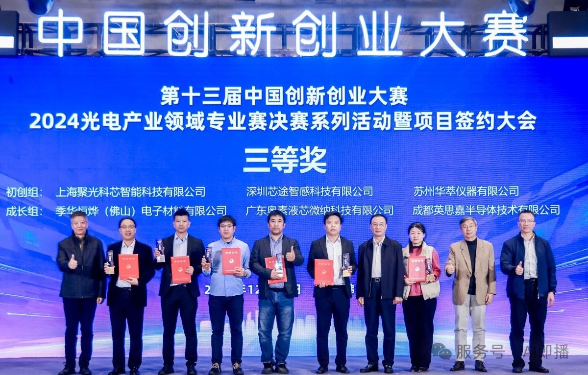 2024年12月20日至21日,第十三届中国创新创业大赛2024光电产业领域专业赛决赛系列活动暨项目签约大会在佛山市举行。此次大赛不仅汇聚了全国光电产业的精英,更见证了一颗颗创新之星的闪耀,其中初创组的表现尤为引人注目。在众多怀揣着创新梦想的企业中,微玖(苏州)光电科技有限公司凭借其卓越的技术和创新的商业模式,荣获初创组一等奖,武汉风致上科技有限责任公司、厦门岙邗科技有限公司荣获二等奖、上海聚光科芯智能科技有限公司、深圳芯途智感科技有限公司、苏州华萃仪器有限公司荣获三等奖、福建省嗨佳科技有限公司、智感光芯(深圳)科技有限公司、苏州易芯半导体有限公司、佛山市华创微纳科技有限公司等企业荣获优秀奖,成为行业瞩目的焦点。本文将围绕此次大赛初创组的表现,探讨光电产业领域的创新趋势和未来发展方向。