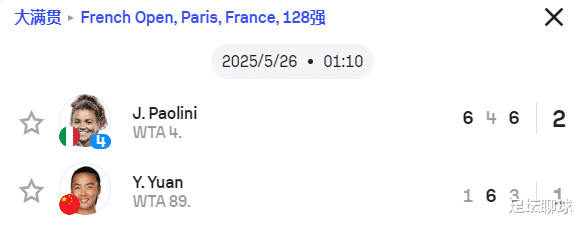 北京时间5月26日凌晨,法网女单第1轮一场比赛,由鲍里妮对阵袁悦。最终,袁悦大比分1-2惜败鲍里妮,无缘逆转晋级,依然收获10个积分、64万元奖金。