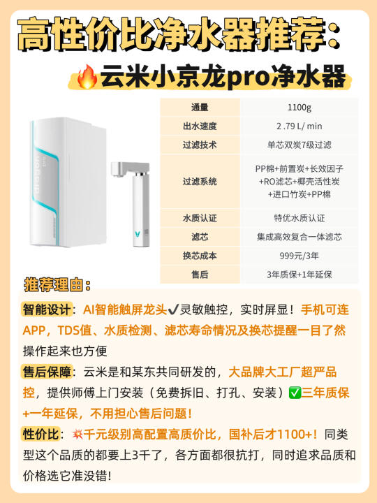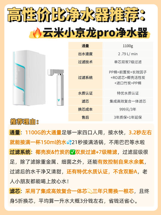 研究了这么久,橙子最pick的是这款🔥云米小京龙pro净水器!!