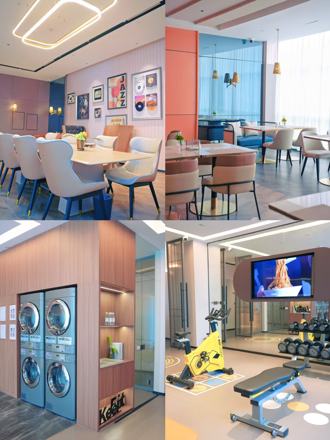 二层有24h健身房和智能自助洗衣烘干,设置好预约会收到收衣提醒,完全不影响外出游玩