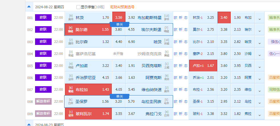 002 莫尔德vs埃尔夫斯堡,莫尔德是一支挪超球队,本赛季莫尔德从第二轮资格赛开打,2胜2负,都是主场拿分,莫尔德若想在附加赛突出重围,主场占得先机才是正理。埃尔夫斯堡是瑞典超球队,球队本赛季在联赛差强人意,目前暂列第7。瑞典超前3可获得欧战资格,主流机构给予两队-0.5档位主队低位、客队高位的初始数据,两队22年在欧协联交锋,当时莫尔德双杀埃尔夫斯堡,并且全部赢下数据,交锋历史而言,莫尔德更具优势!方向:主胜,比分:2-1,3-1。