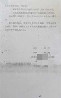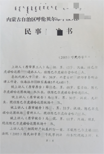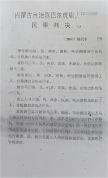 庭审中,薛某忠提交的承包合同被存在关键瑕疵:没有签约日期,其真实性与合法性存疑;而马某相那份经法院主持达成、双方签字确认且已实际履行的调解协议,以及羊只交付凭证,却未被一审法院采信。2003年3月18日,陈巴尔虎旗相关法院作出一审判决,认定100只羊归薛某忠所有。