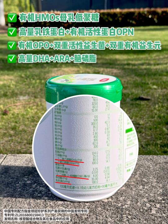▪保护顶配-HMOs母乳低聚糖+乳铁蛋白100mg/100g+有机活性蛋白OPN+专利核苷酸组合