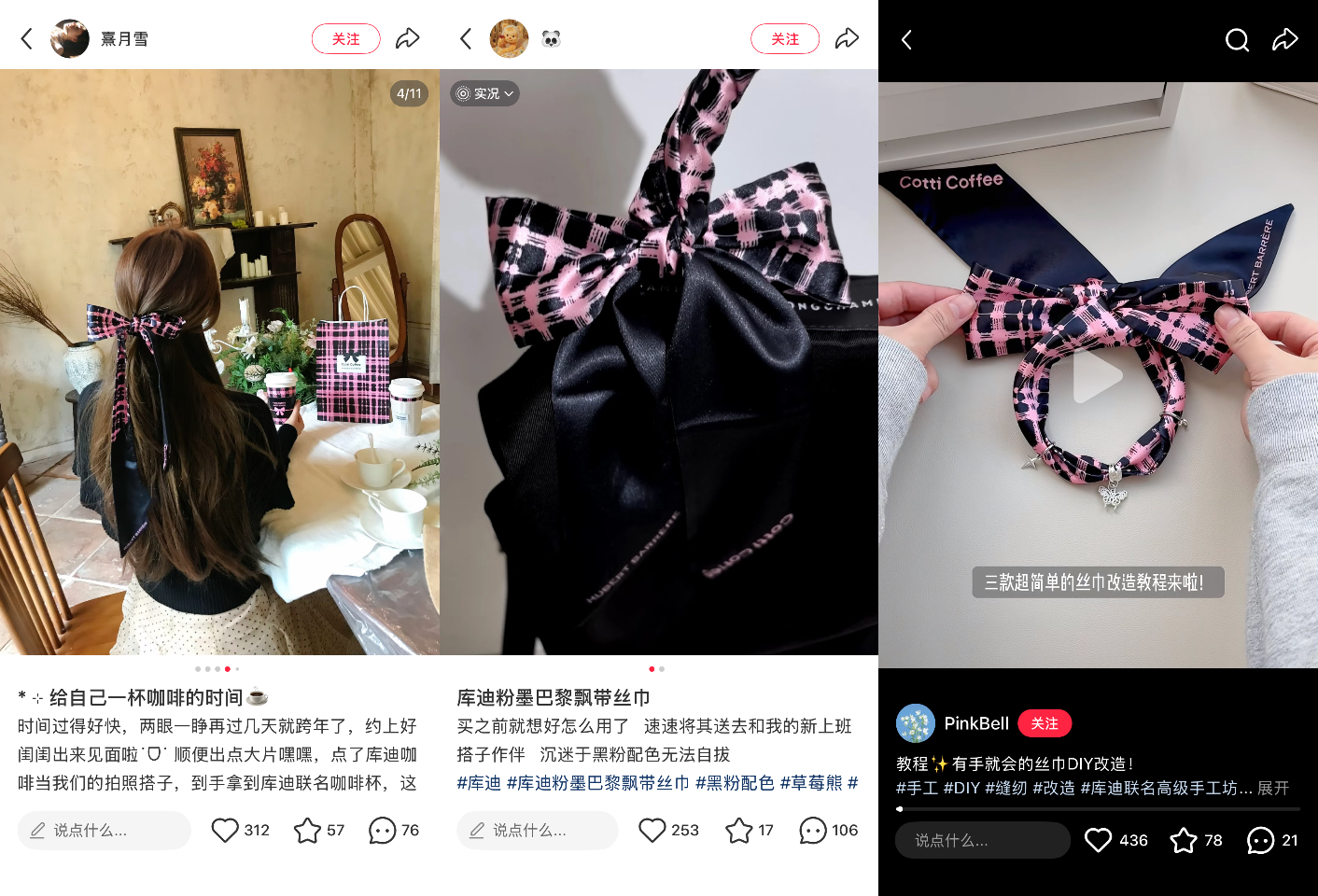 库迪这次联名周边的创新更是锦上添花。此次推出的联名丝巾,跳出贴纸、立牌等传统范式,兼具审美与实用价值,不仅提升库迪的时尚格调,更推动传播破圈——在小红书上,大量用户分享丝巾的穿搭创意,让讨论从咖啡圈延伸至时尚领域,进一步放大品牌声量。