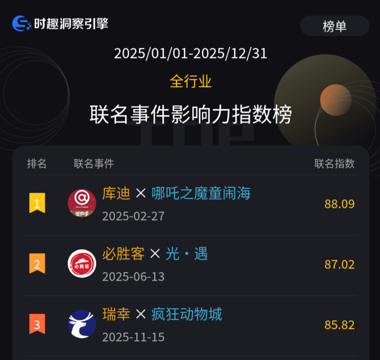 一方面,库迪的联名横跨文化、体育、科技等多元领域,通过进入不同场景,与更广泛的群体建立连接,持续刷新品牌活力形象。如2025年,库迪联名《哪吒2》《樱桃小丸子》《蜡笔小新》等热门IP、2025年中国金鸡百花电影节等文化活动、国际雪联世界杯等国际著名赛事和体育组织、世界人工智能大会等高规格论坛。