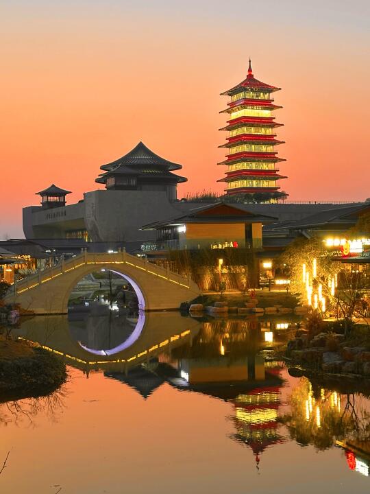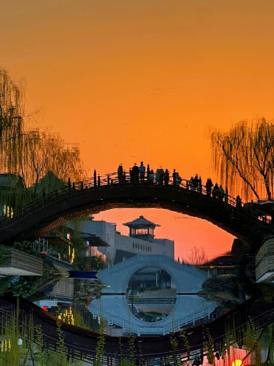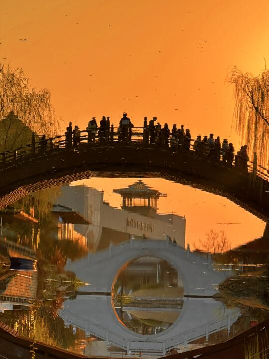 真的太幸运了,离开扬州的前一晚看到了浪漫的橘子色的日落🌅水中倒影live图简直赞爆了❗️