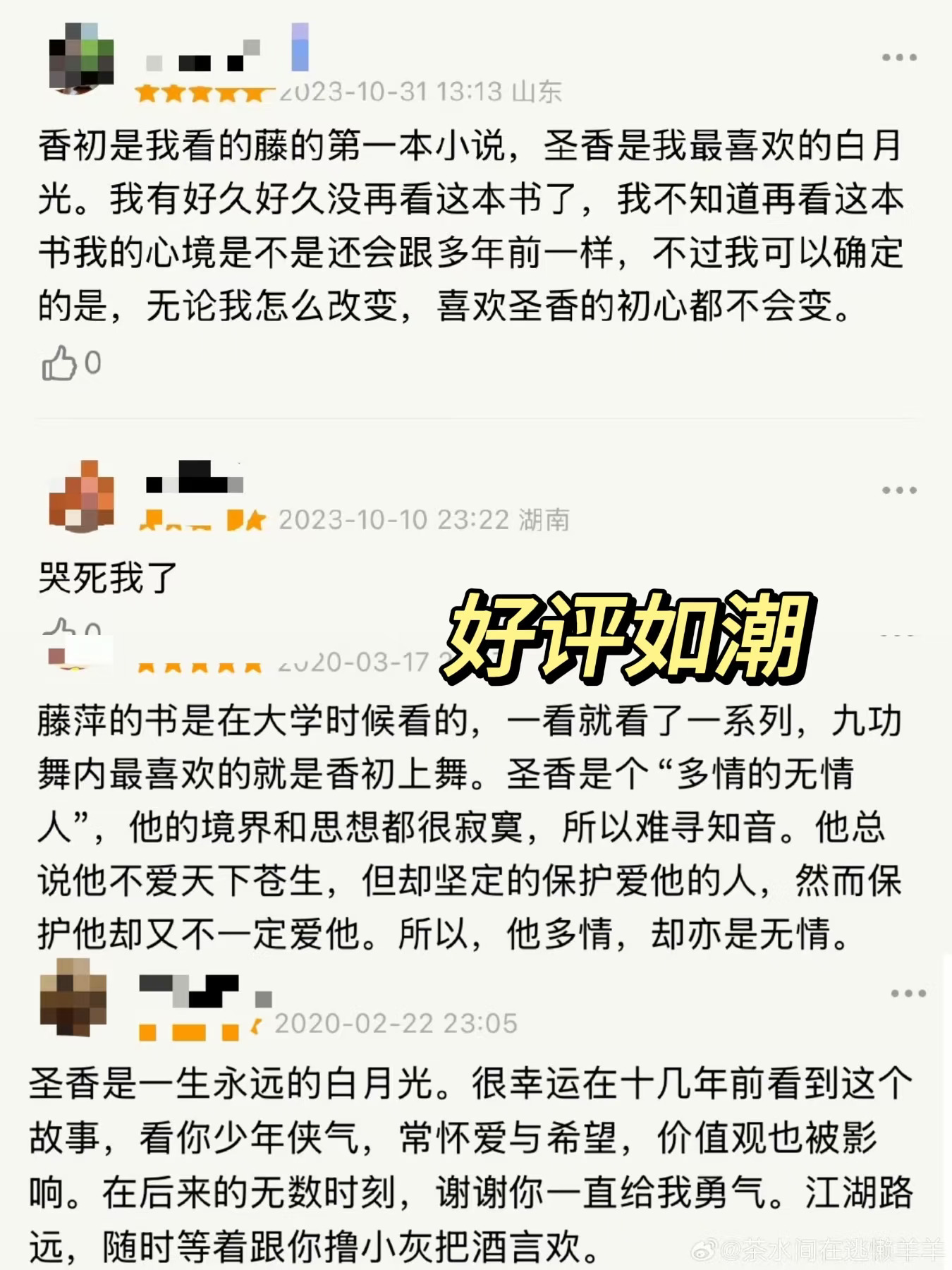 《莲花楼》的作者藤萍大大今天官宣了作品《香初上舞》也即将影视化啦! 以前只知道她是莲花楼的作者,一搜才发现,原来藤萍还有那么多拿得出手,好评如潮的作品!而藤萍也因为这些作品曾获得过含金量极高的第四届茅盾大赛新人奖! 藤萍的实力加上《香初上舞》的概念图,一经发出后就惹的书迷朋友们一阵狂欢,不敢想谁能演绎这样一位七窍玲珑,终日以纨绔大少的形象示人内里却背负着沉重秘密的男主圣香 不过有了《莲花楼》珠玉在前,加上概念海报的还原度,真的很难不期待《香初上舞》啊!
