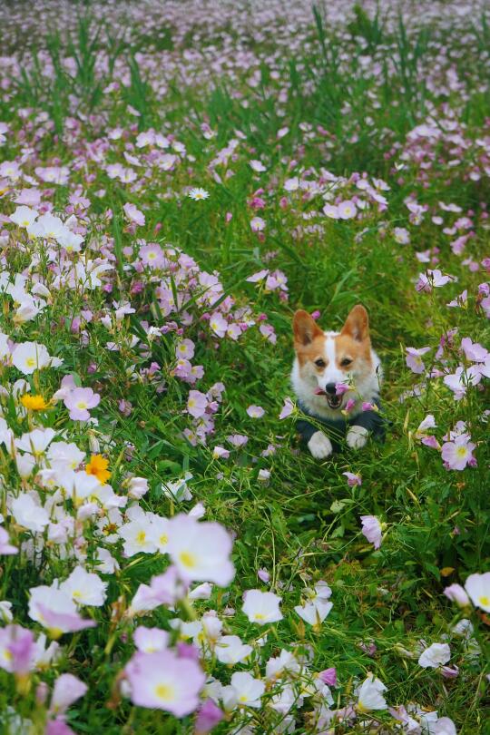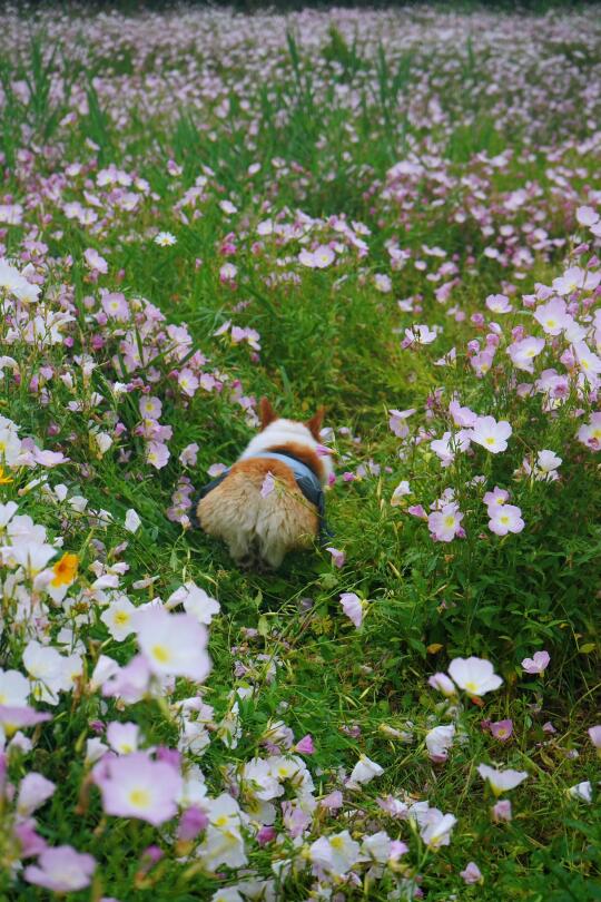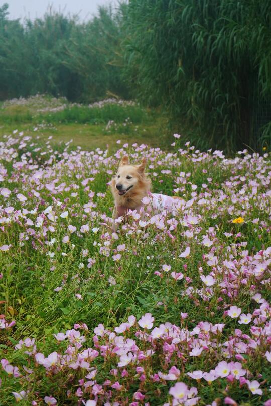上个月就刷到过很多次阜阳的月见草花海一直有事没来 还好没错过花期超级好看!!!导航至泉水湾湿地公园就能看到大片大片的花海超美哒!抓拍小狗动态巨可爱
