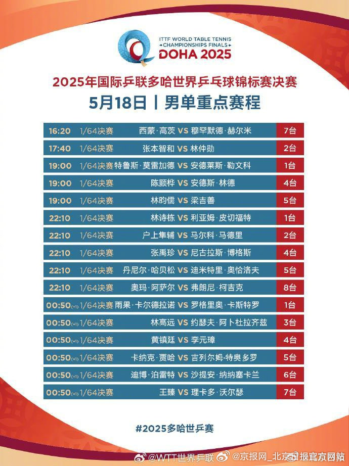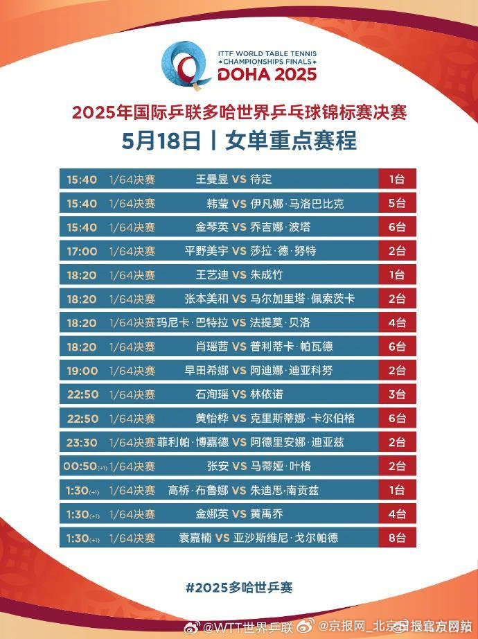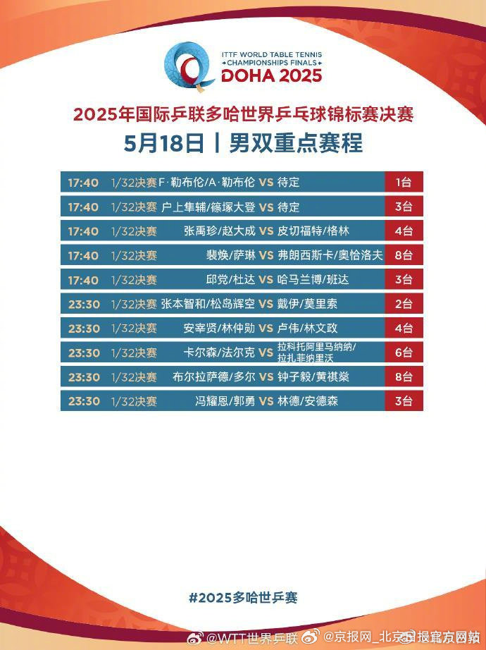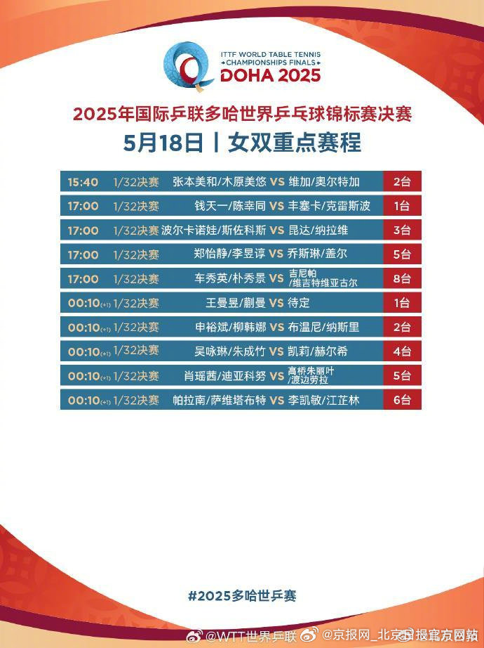 【为他们加油!#多哈世乒赛今日重点赛程#[打call]】#莎头多哈混双首秀# 今天,2025年多哈世乒赛比赛继续。据今日赛程↓↓转存,为国乒加油!