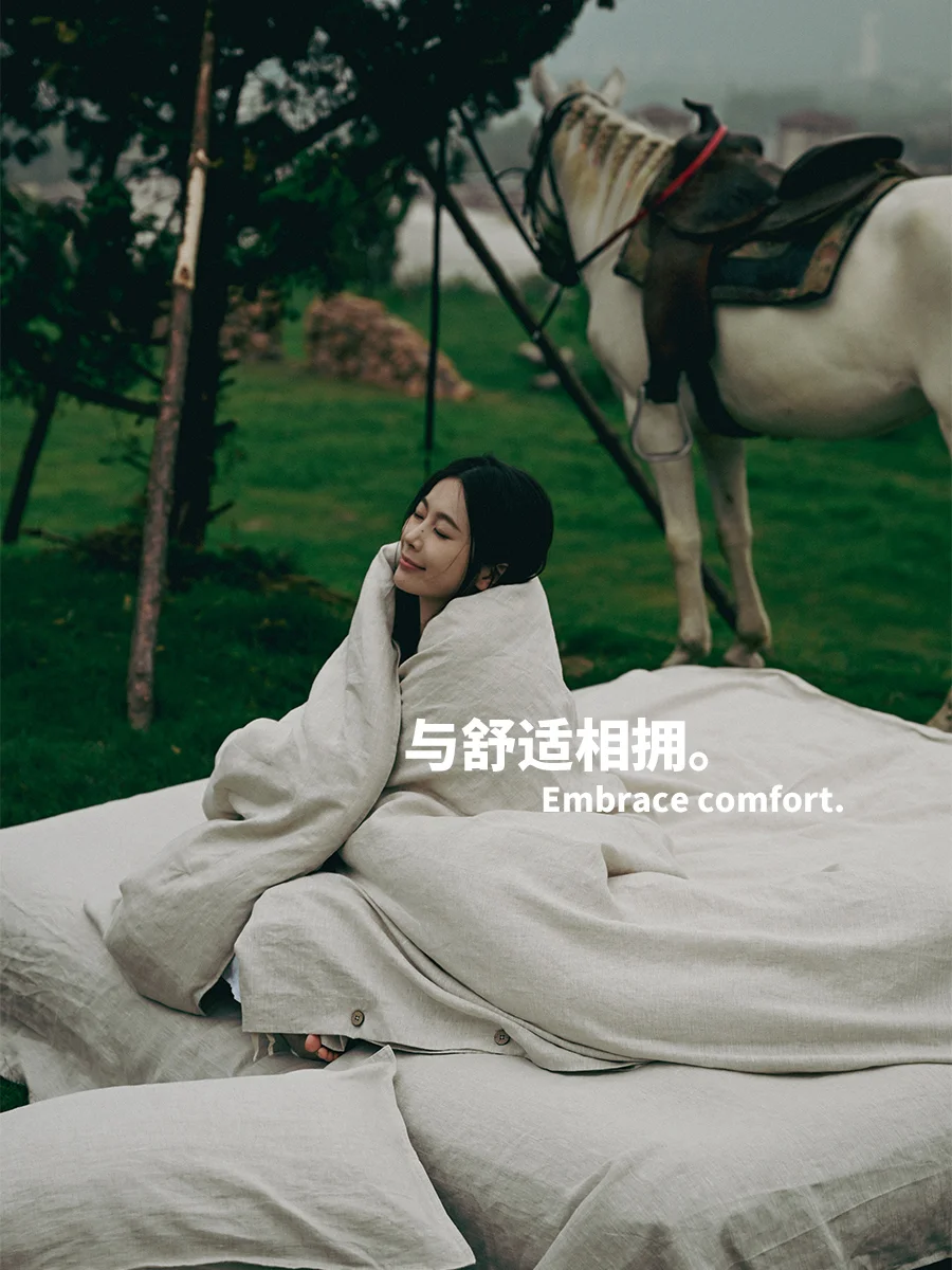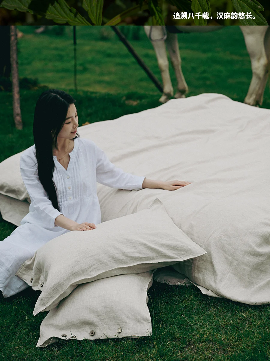 窗帘而言, 汉麻和亚麻是很难分出高下的。 但是! 床品的领域, 我敢说汉麻是100% 领先的! 基本上亚麻有的优点, 汉麻全都有。 在抑菌性和舒适性方面, 汉麻更好。 所以夏天如果你想要一套麻的床品, 汉麻更推荐~ 本原亚麻布艺 汉麻四件套