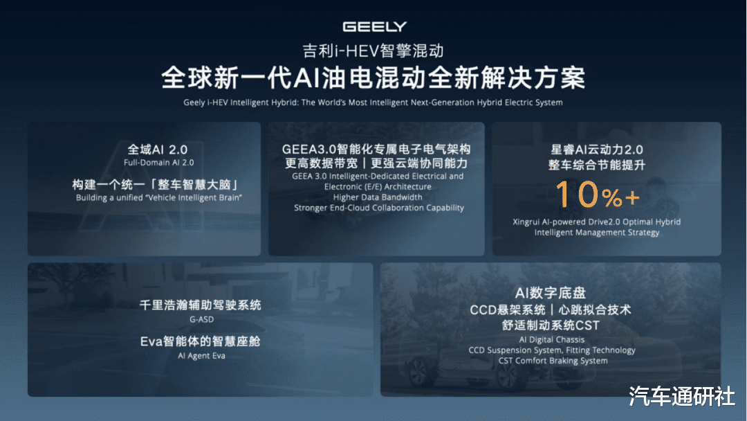 简单来说,从汽车行业技术演进的长周期来看,吉利i-HEV的发布,标志着一个重要的转折:混动技术的核心竞争力,正在从比拼“机械效率”,转向比拼“AI能力”。