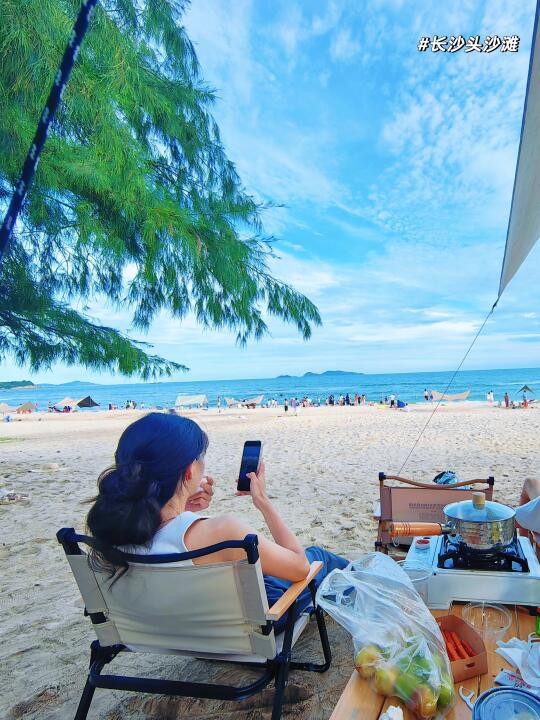 全能型白沙滩 海岸线长 沙子很细 海水很清 🉑下海游泳。 有树荫乘凉 🉑露营烧烤 礁石区🉑赶海。大小朋友都适合