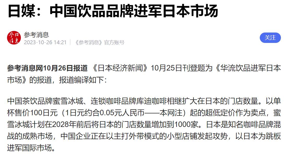 要知道,这并不是一家只会闭门造车的企业,从2023年起,蜜雪冰城就已经把门店开到了日本。