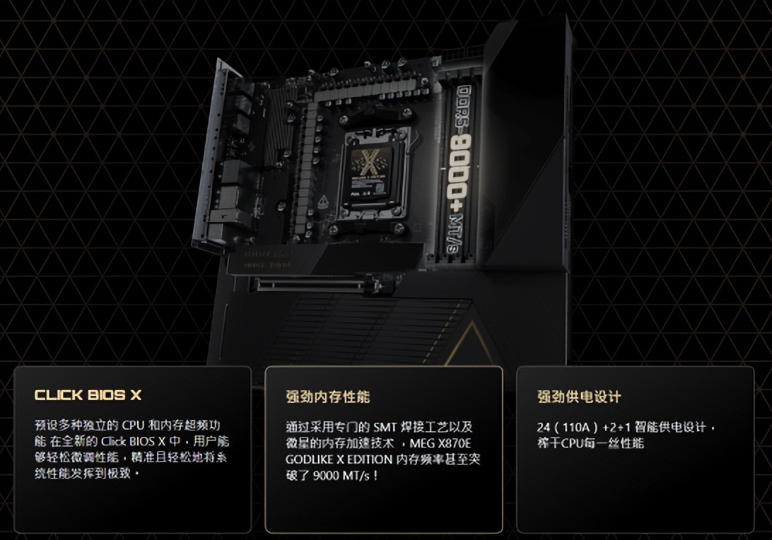 MEG X870E GODLIKE X EDITION超神主板已正式上市,首发售价8888元。用户可通过微星京东自营旗舰店等授权渠道购买。