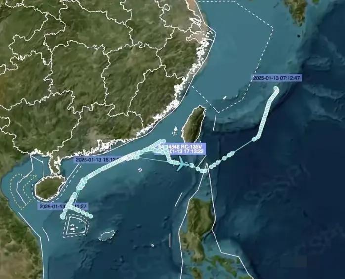 1月13日,一架美军RC-135V电子侦察机从冲绳嘉手纳基地起飞,沿途穿越巴士海峡,贴近中国广东和海南岛海域进行侦察。根据官媒发布的照片,美军侦察范围几乎紧贴中国近海,挑衅意味浓厚。这种行为让人不禁质疑:美国如此靠近,是在赌中国不敢还击吗?