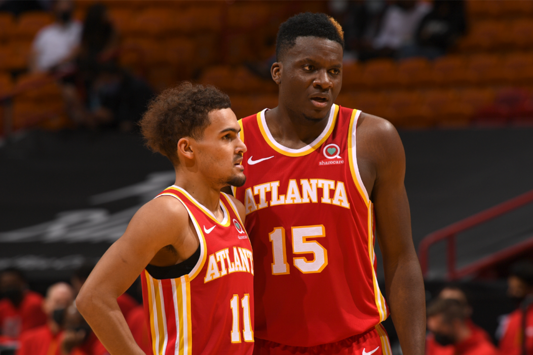 2020-21赛季,卡佩拉曾作为老鹰首发中锋打进东决,个人场均能拿到15.2分14.3篮板2.0盖帽,投篮命中率59.4%,当时他身边搭档的是另一个控场大师特雷杨。