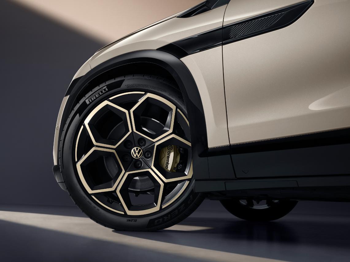 作为一款中大型SUV,与众08的尺寸数据同样令人眼前一亮,具体数据为5000*1954*1672(1688)mm的长宽高和 3030mm轴距,虽说不清楚新车未来是提供5座布局还是6/7座可选,但是对空间有较高要求的朋友们无需担心,这个身材在同级别算是中上游水平了。而得益于尺寸优势,车身侧面看起来也有不错气场,尤其是在双腰线设计的加持下,饱满的姿态更具力量感。值得一提的是,新车轮毂造型也是偏运动风格,并且内置Brembo刹车卡钳,我想这或许在透露性能方面不会差。