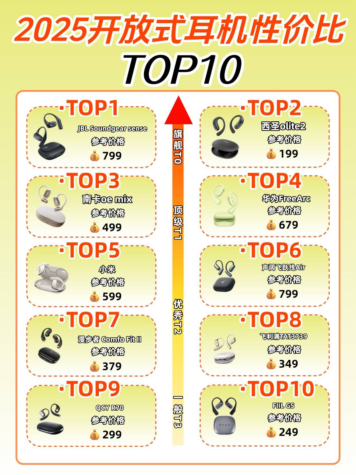 在正式推荐之前,先给大家参考一份由权威测评机构发布的开放式耳机排行榜。榜单基于音质表现、佩戴舒适度、续航能力、连接稳定性等多维度评测得出,具有较高的参考价值。大家在选购时,也可以从榜单中的型号入手,结合自身需求进行挑选。