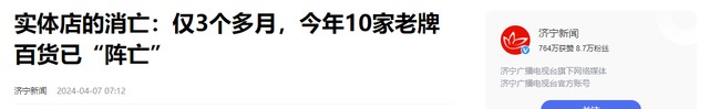 济宁新闻:2024年4月7日,《实体店的消亡:仅3个多月,今年10家老牌百货已“阵亡”》