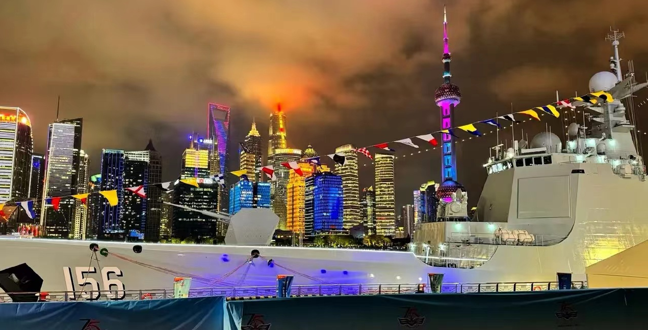 4月23日,是中国人民解放军海军建军75周年纪念日。为了隆重庆祝海军节,东部战区海军某驱逐舰支队,将052DL型防空驱逐舰156“淄博”舰停泊在外滩,与黄浦江畔的高楼大厦和霓虹灯光相映成趣。