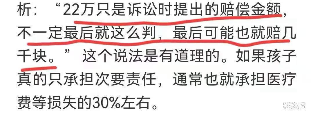在福建地区,即便仅构成十级伤残,残疾赔偿金也可能达到10万元左右,再加上精神损害抚慰金和其他费用,22万也不是随口说来的。只不过,这22万是原告的“诉讼请求额”,最终能获得多少,还要看法院最后的责任划分和判罚。