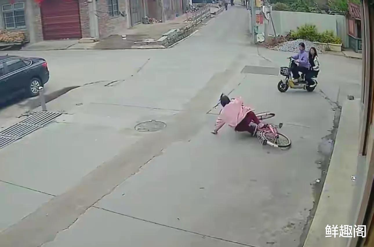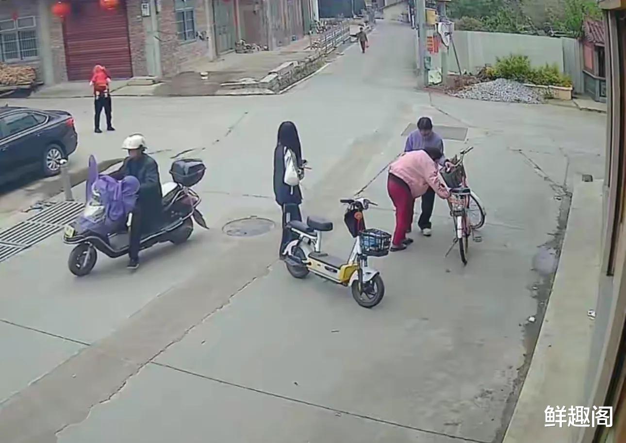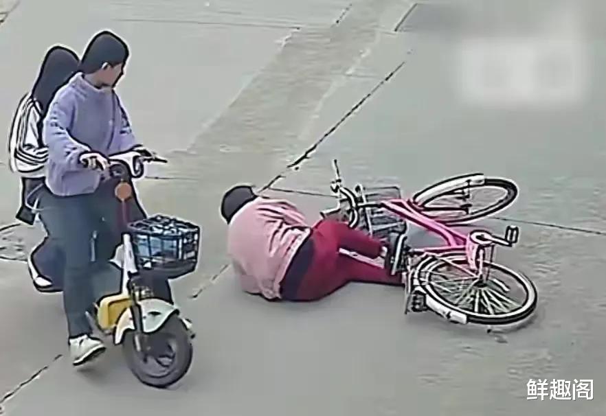 我们把时间倒回到2025年3月。福建莆田,一位老太太骑自行车经过一个路口,为了避让一辆右转的白色轿车,身体失去重心,连人带车摔倒在地。此时,两名未满16周岁的初中女生正骑着电动车经过。监控画面显示,这两名女生看到倒地的老人后,曾经有过短暂犹豫。