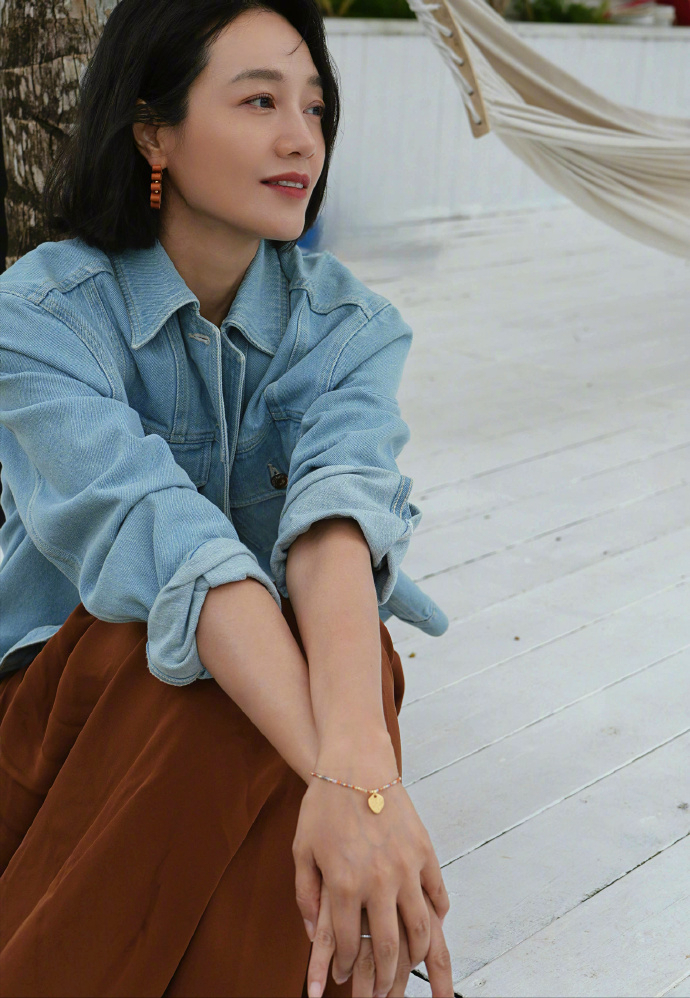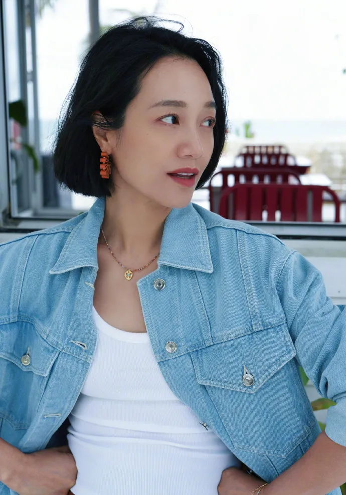 浅蓝色的牛仔夹克外套,自带一种大海的清新感。虽然它可能并不显白,但却胜在文艺气息十足。牛仔夹克作为时尚界的经典单品,一直以来都备受青睐。朱丹选择的这件牛仔夹克,版型挺括,线条流畅,穿在身上既舒适又有型。