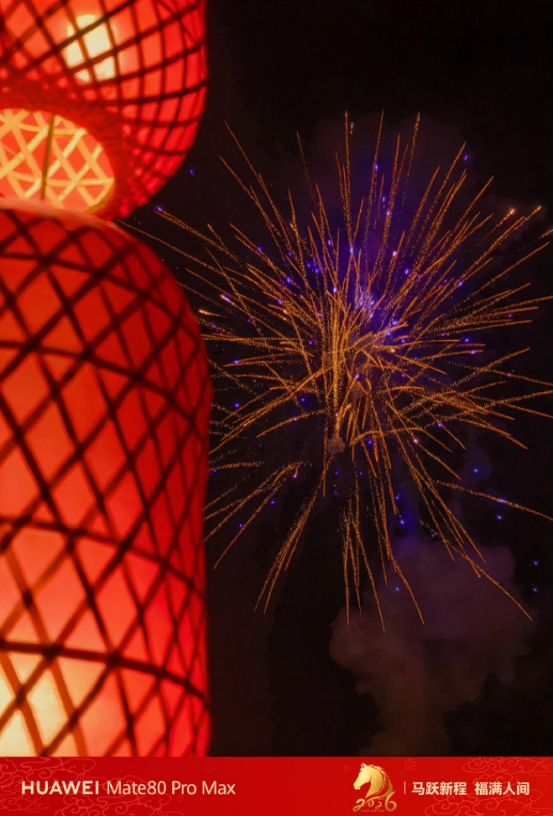 不仅如此,配合4000万像素超广角摄像头和潜望式双长焦镜头,华为Mate 80系列还实现了从超广角到超长焦的全焦段覆盖。其中,6.2/12.4倍人像长焦可自然虚化背景,让年味装饰恰如其分;5000万像素超聚光微距长焦能清晰呈现饺子褶、灯笼纹等精致细节;5000万像素超长焦则能轻松拉近远处烟花与街景人文,让新春创作不受距离限制。