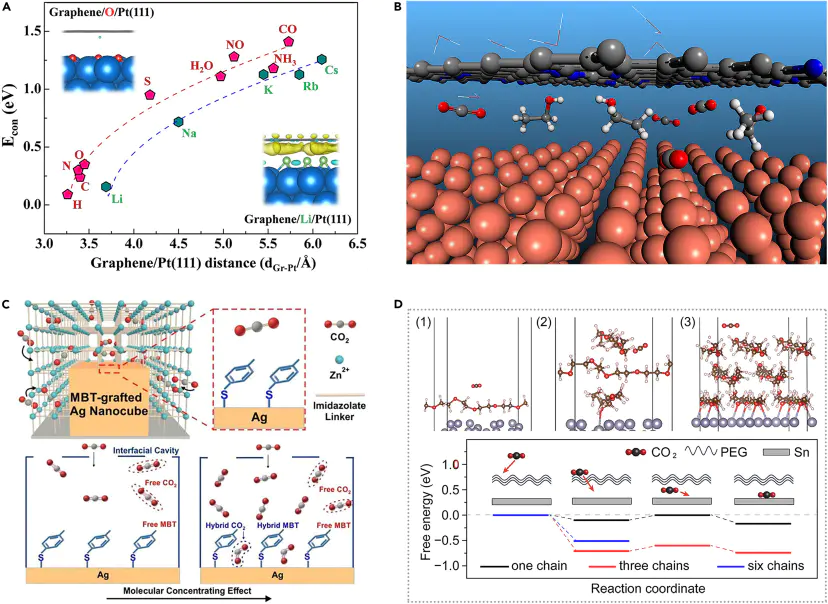 电子限域调控:限域载体与活性中心(如金属纳米颗粒、金属氧化物簇)之间的电子相互作用会使材料内部电荷在材料间转移,并导致活性中心的电子结构改变,从而调控其对反应物的吸附强度和活化能力。