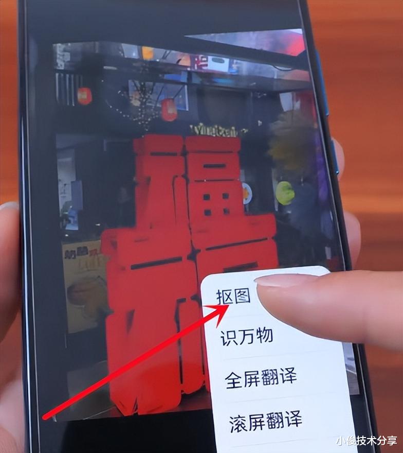 看到图片上面有一个好看的福字,想快速把它扣取下来,此时,我们只要长按图片2秒,接着选择【抠图】, 就可以快速把图片抠出来了!
