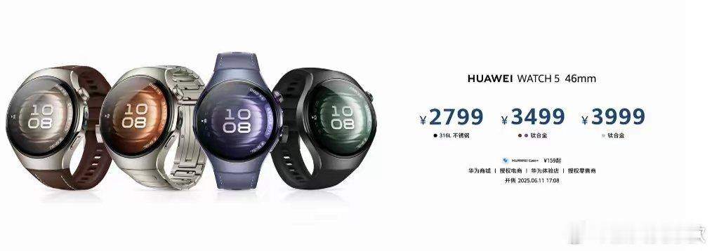 华为WATCH 5搭载鸿蒙操作系统 5,全新X-TAP智感窗可开启微体检、免气囊高血压风险研究、业界首发指尖实时血氧。手表共有42mm、46mm两种尺寸,售价2699元起。