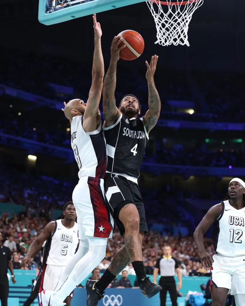 在一场备受瞩目的奥运小组赛中,美国男篮以103-86的比分战胜了南苏丹队,展现了他们强大的实力和深厚的阵容深度。这场比赛中,替补登场的德里克-怀特成为了美国队的亮点之一,他在有限的上场时间内,展现出了极高的效率和出色的三分投射能力。