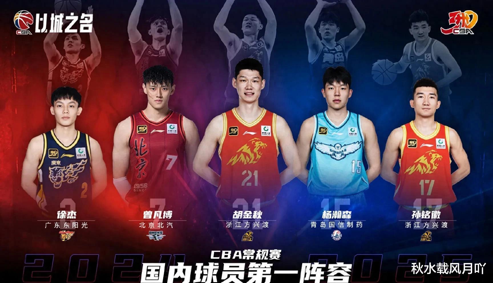 这份最佳阵容名单中,国内球员第一阵容由浙江方兴渡男篮胡金秋、青岛国信制药楊瀚森、北京北汽男篮曾凡博、浙江方兴渡男篮孙铭徽、广东东阳光男篮徐杰组成。