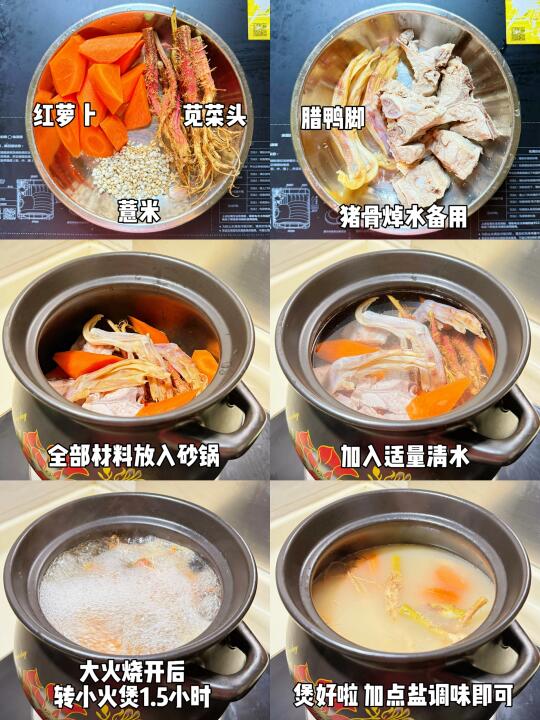 簕苋菜头、红萝卜、薏米、腊鸭脚、猪骨