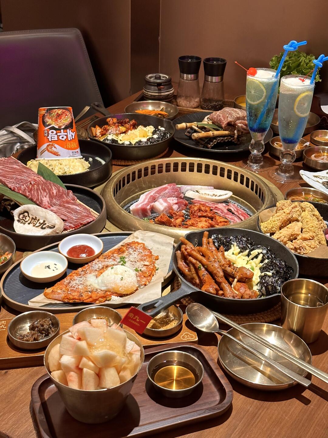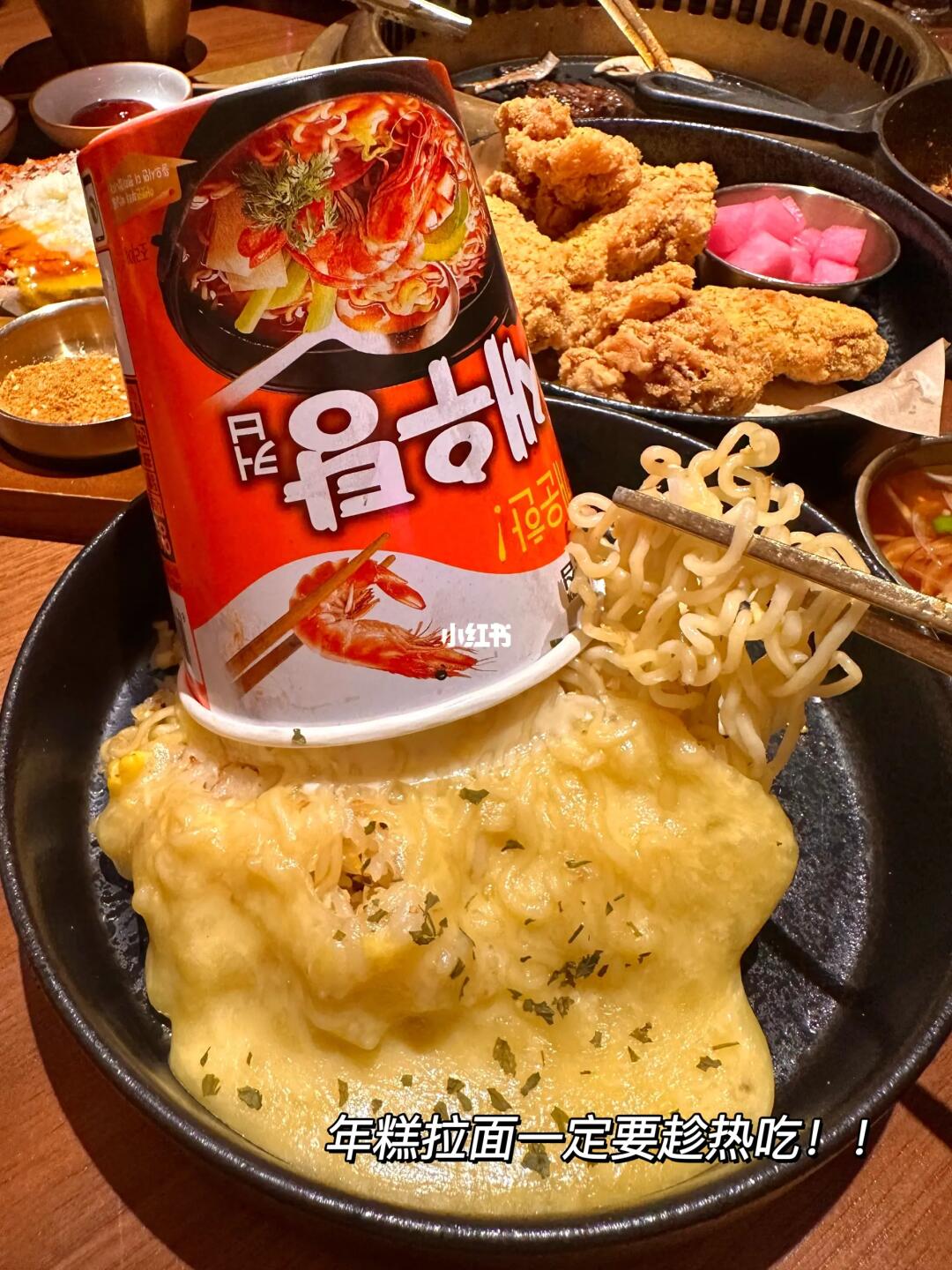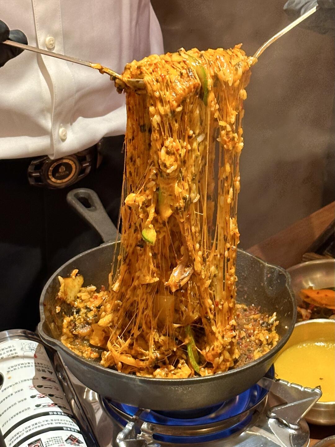 我们点了横膈膜和雪花牛肋条,品质很不错 空口吃都绝了…芝士辣八爪鱼 混着海苔碎和米饭一起拉丝,香辣入味真的不要太好吃了!还有芝士泡菜饼、年糕拉面、水果雪花冰…我们点了一大桌都没踩雷!性价比很高!!