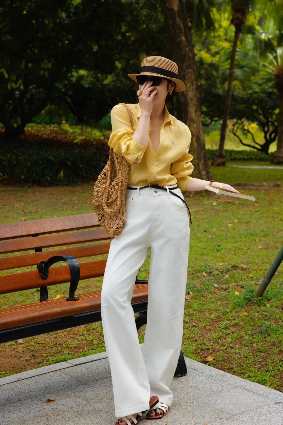 一、黄色衬衫:解锁法式慵懒与都市利落衬衫作为春夏必备的单品,无论是单穿或者当做外套,都必不可少,而黄色衬衫则可以为你的穿搭带来一份不一样的惊喜。