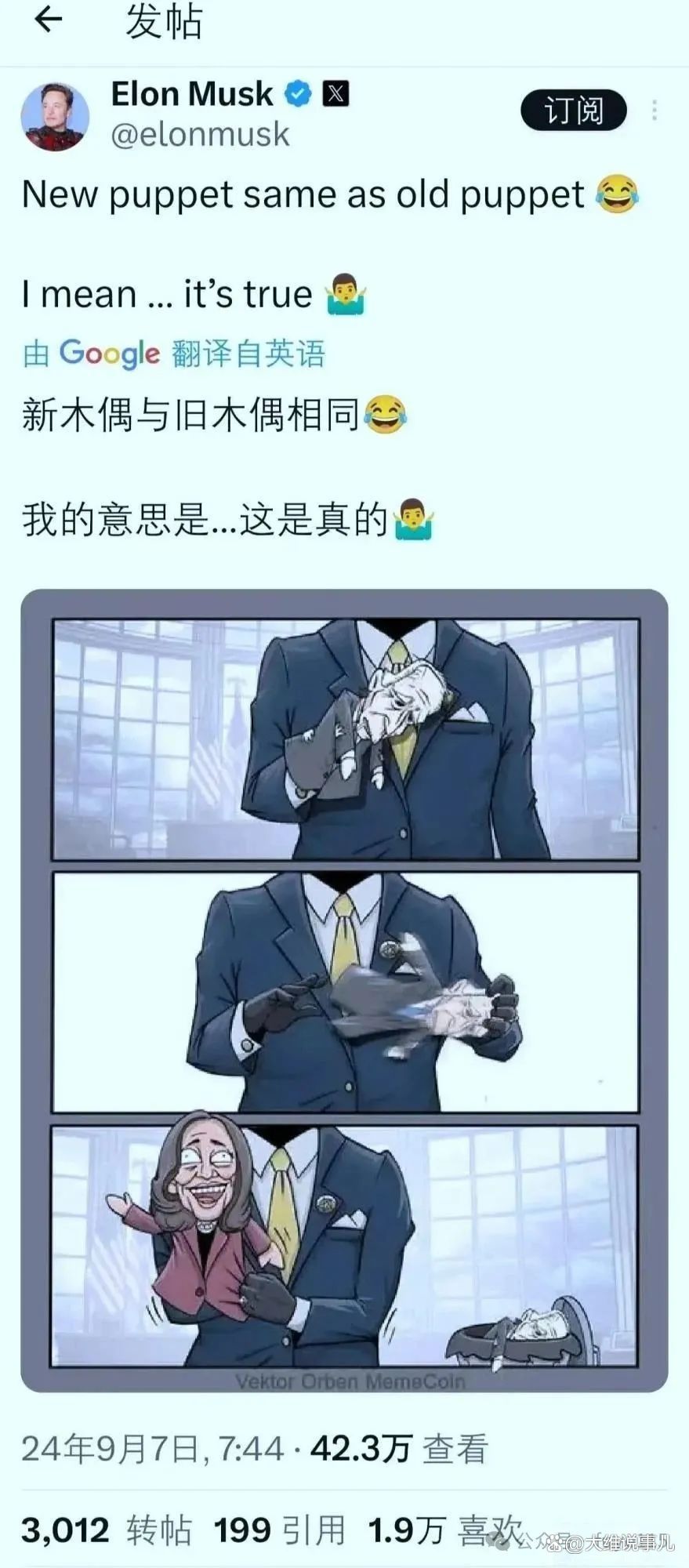 马斯克发布漫画,批评拜登和哈里斯都是政治傀儡。他对民主党和共和党都进行了批评,指出两党背后都有大型利益集团。他对民主党的恨意以及他对政府改革的看法引起了人们的深思。